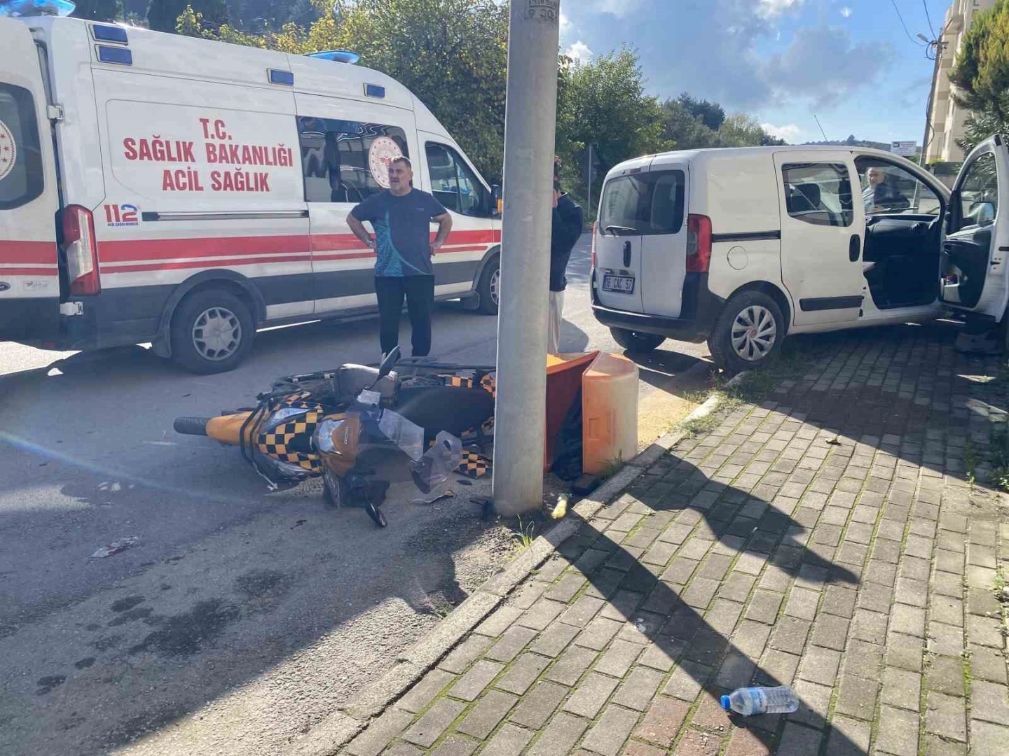 Bursa’nın Mudanya ilçesinde sürücü eğitim pistinde zincir bir markette kurye olarak çalışan motosiklet sürücüsü ehliyetsiz bir sürücünün yasak yerden U dönüşü yapması sonucu yaralandı.