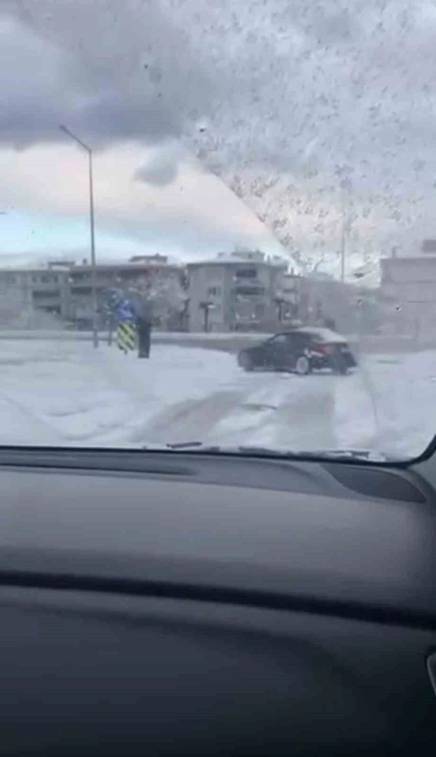 Kentte etkili olan kar yağışıyla birlikte kayganlaşan yollarda tehlikeli anlar yaşandı. Kar yağışını fırsat bilen bir sürücü, otomobiliyle kavşakta drift atarak trafik güvenliğini hiçe saydı. O anlar çevredeki bir vatandaş tarafından cep telefonu kamerasıyla kaydedildi.