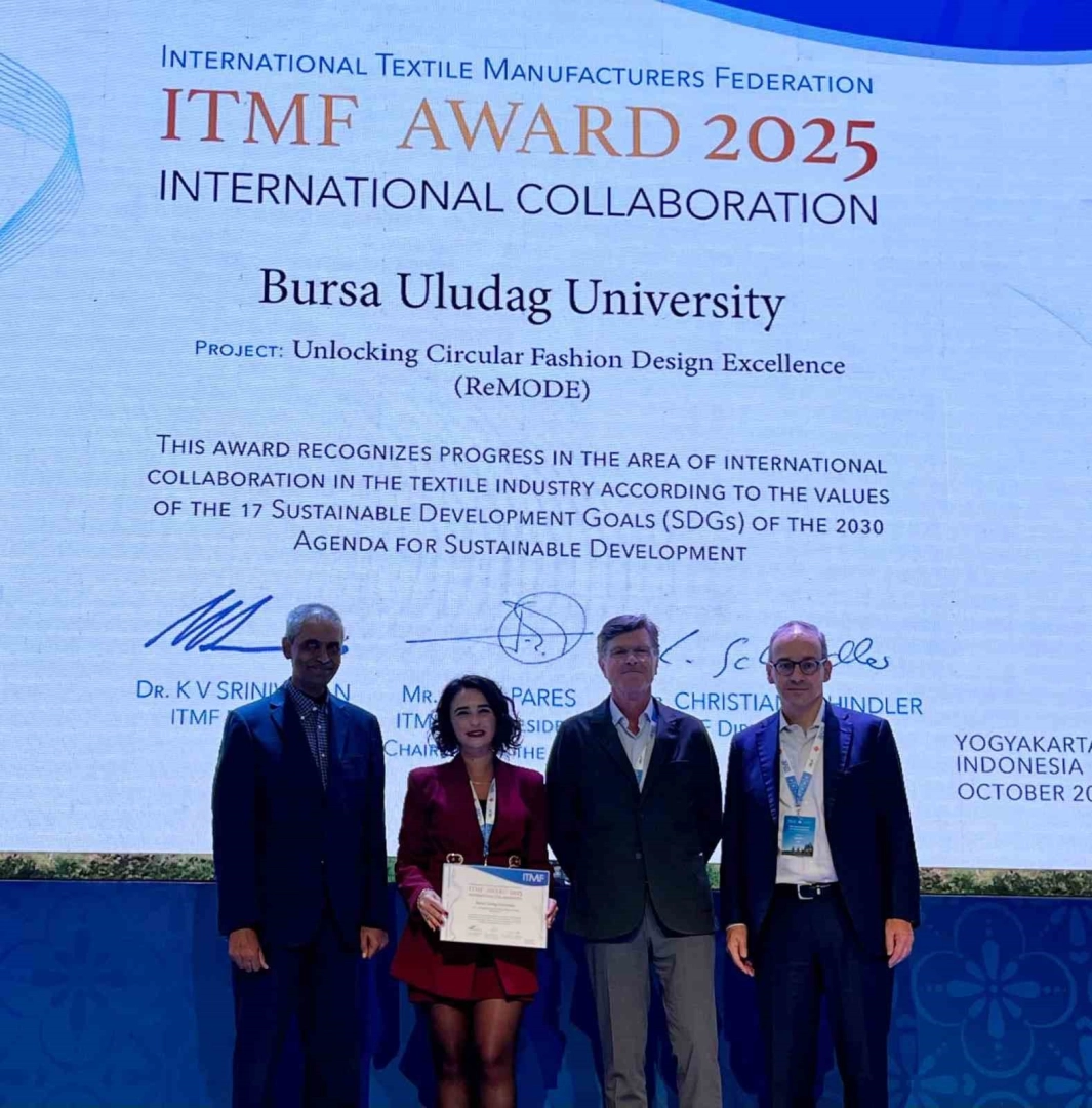 BUÜ İnegöl Meslek Yüksekokulu Tekstil Teknolojisi Programı Öğretim Üyesi Doç. Dr. Zeynep Ömeroğulları Başyigit, bu yıl Endonezya’nın Yogyakarta kentinde düzenlenen International Textile Manufacturers Federation (ITMF) ile International Apparel Federation’un (IAF) tarafından gerçekleştirdiği ITMF & IAF Annual Conference 2025’ta ödül almayı başardı. Doç. Dr. Zeynep Ömeroğulları Başyiğit’in çalışması, etkinlik kapsamında yapılan uluslararası proje yarışmasında dünya genelinden 90’ın üzerinde proje arasından seçilerek "International Collaboration Award" ödülü almaya hak kazandı.