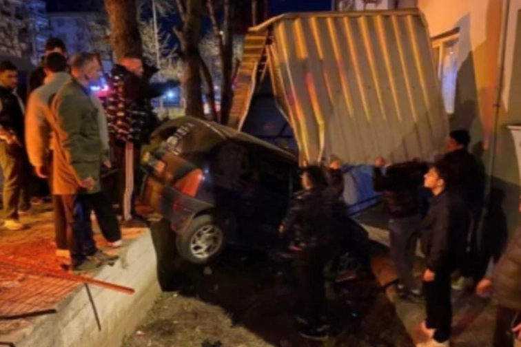 Sürücüsünün direksiyon hakimiyetini kaybettiği otomobil, yol kenarındaki binanın bahçesine savrularak durabildi.