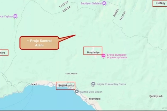Proje dosyasında yer alan bilgilere göre; 3 adet dev rüzgâr türbini ve lityum-iyon teknolojili bir elektrik depolama tesisinden oluşan yatırım, Karacaali Mahallesi sınırları içerisinde konumlanacak. Söz konusu alanın, Bursa 2020 yılı 1/100.000 ölçekli Çevre Düzeni Planı'na göre "Orman Alanı" ve "Uzun Mesafeli Su Havzası Koruma Bandı" içerisinde kalması dikkat çekiyor.