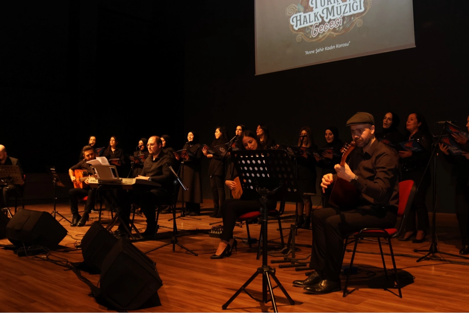 Türk Halk Müziği Korosu derslerine katılan 14 kadının yer aldığı koro Tolga Yıldırım şefliğinde sahne aldı. Anadolu’nun farklı yörelerinden derlenen Türk halk müziğinin seçkin eserlerinden oluşan 10 parça seslendiren koro, izleyicilere duygu dolu ve keyifli anlar yaşattı. Gecenin sonunda ise bir potpori eser seslendirildi. Kadınların sanatsal üretim yoluyla toplumsal yaşamda daha görünür olmasına katkı sunan etkinlik, izleyicilerden büyük beğeni topladı. Program sonunda seslendirilen potpori seyirciler tarafından tekrarlanması istendi. Koro, seyircinin isteğini kırmadı. Gece sonunda sahne alan koro üyeleri uzun süre ayakta alkışlandı.