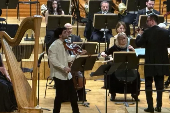Konserde sahne alan viyola sanatçısı Arcan İsenkul "Der Schwanendreher" ve "Bir Sergiden Tablolar" gibi eserleri BBDSO eşliğinde seslendirdi.