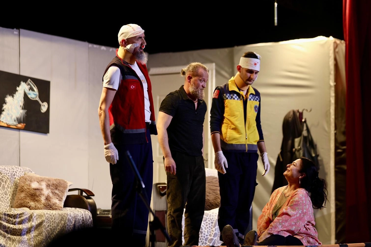 BURSA (İGFA) - İki perdelik oyun, temposu, mizahı ve güçlü oyunculuk performanslarıyla izleyicilerden tam not alarak ayakta alkışlandı. Tayfun Türkili’nin yazdığı, yönetmenliğini Emel Öztin’ın üstlendiği, baş rollerinde İmren Aslan ve Rıdvan Özbircan'ın oynadığı oyun; sahnedeki samimiyet, yüksek enerji ve ekip ruhuyla dikkat çekti.