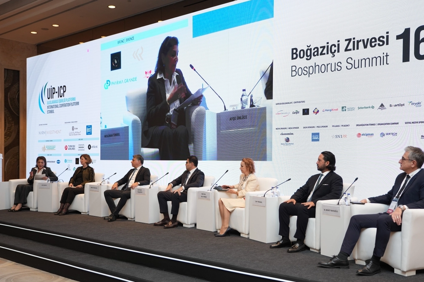 16'ncı Boğaziçi Zirvesi kapsamında, Uluslararası İşbirliği Platformu (UİP) Yönetim Kurulu Üyesi Neslihan Tonbul'un moderatörlüğünde düzenlenen 'Bolluğun Ötesinde: Dayanıklı Bir Gelecek için Tarımı, İklimi ve Gıda Güvenliğini Yeniden Düşünmek' paneline, Cargill CEO'su Murat Tarakçıoğlu, Tiryaki Agro CEO'su Süleyman Tiryaki, Eskişehir Osmangazi Üniversitesi Ziraat Fakültesi'nden Prof Dr. Ece Turhan, Eskişehir Belediye Başkanı Ayşe Ünlüce, ANT Systems CEO'su ve Yönetim Kurulu Başkan Yardımcısı Can Yurdakul ve UPL Türkiye Ülke Müdürü, Orta Asya-Ortadoğu-Rusya-Belarus Bölge Başkanı M. Murat Yahyaoğlu katıldı.