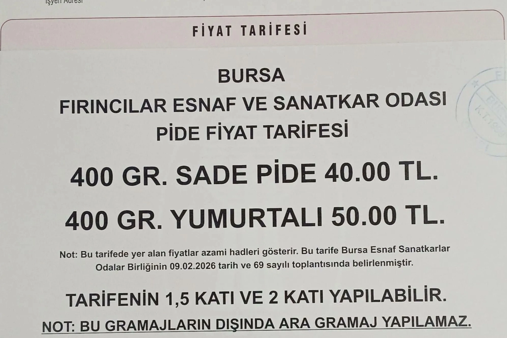 Bursa’da Ramazan ayının yaklaşmasıyla birlikte sofraların vazgeçilmezi olan pide fiyatları belli oldu. Bursa Esnaf ve Sanatkar Odası tarafından paylaşılan yeni tarifeye göre, bu yıl yine pide fiyatlarında artış gözlemleniyor.