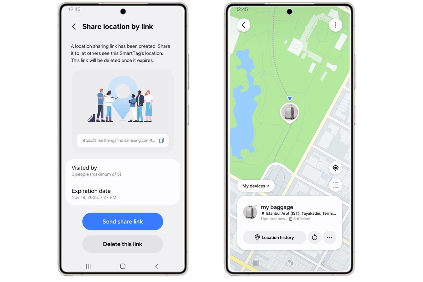 SmartThings Find, kayıtlı Samsung Galaxy cihazlarını bulmak için Bluetooth Low Energy (BLE) ve Ultra-wideband (UWB) teknolojisinden faydalanıyor. SmartThings Find, 700 milyondan fazla Galaxy cihazının oluşturduğu global ağ tarafından destekleniyor. Bu hizmet; akıllı telefonlar, tabletler, akıllı saatler, kulaklıklar ve Galaxy SmartTag taşıyan diğer cihazlar dahil olmak üzere, kullanıcıların cihazlarını her zaman ve her yerde hızlı ve güvenli bir şekilde bulmasını sağlıyor. Yapılan iş birliği sayesinde Türk Hava Yolları, kayıp bagaj bildirimlerine konum verisi içeren bir bağlantı ekleyen yolcuların Galaxy SmartTag ile donatılmış bagajlarını daha verimli bir şekilde teslim edebiliyor. Yolcular ise “Cihaz Resmini Değiştir” özelliğini kullanarak SmartThings Find uygulamasına bagajlarının gerçek fotoğrafını kaydedebiliyor ve kaybolması durumunda bagajlarını daha kolay bulabiliyor.