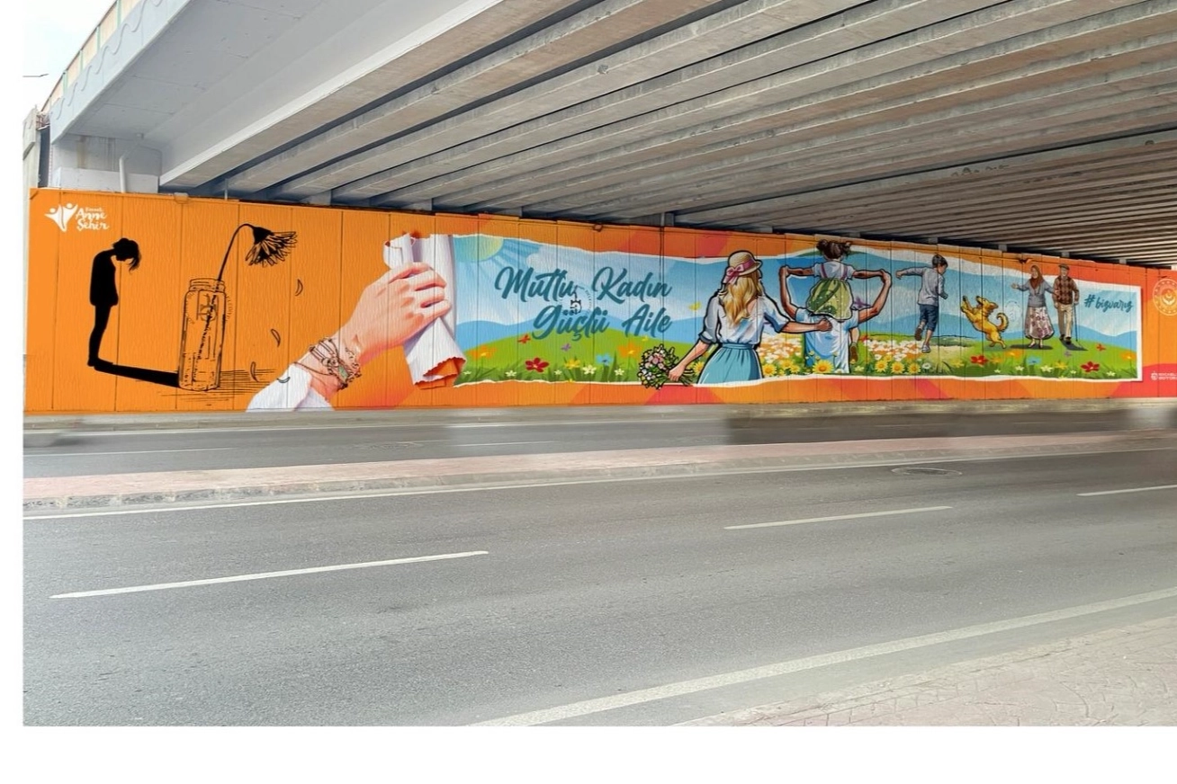 Kocaeli Büyükşehir, “Aile Yılı” temasıyla kadına yönelik şiddete dikkat çekmek ve toplumsal farkındalığı artırmak amacıyla önemli bir çalışma başlattı. Şehrin yoğun kullanılan güzergâhlarından biri olan Alikahya Stadyum yolu üzerindeki köprü altı duvarları grafiti çalışmaları sonucunda aile temasıyla renklendirildi.