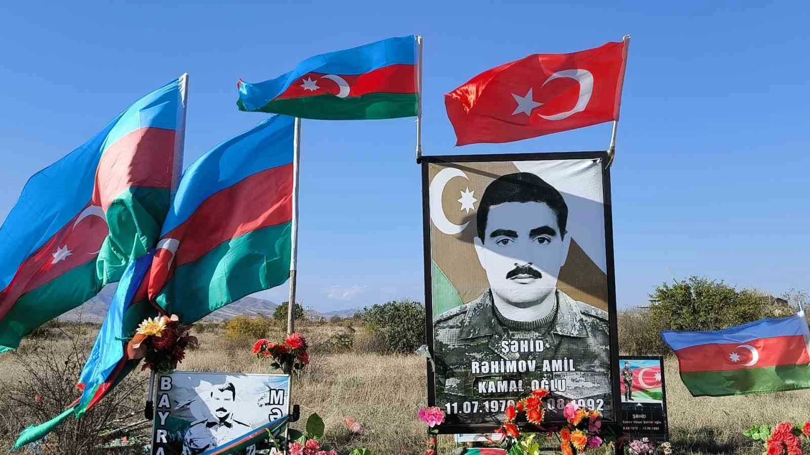 Hocalı’da yer gök Azerbaycan, Ağdam’da bulunan şehit mezarlarında Azerbaycan-Türkiye bayrakları dalgalanıyor.