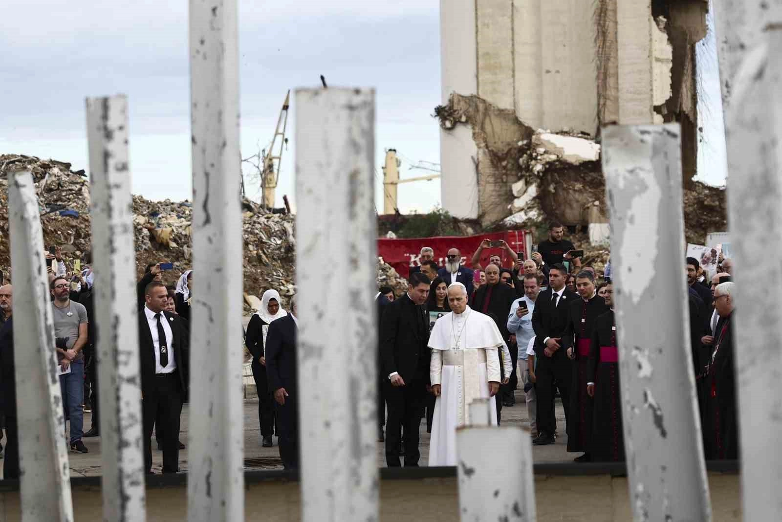 Papa 14. Leo, Lübnan ziyaretinin son gününde 2020 yılında 200’den fazla kişinin ölümüne, 7 binden fazla kişinin yaralanmasına yol açan patlamanın gerçekleştiği Beyrut Limanını ziyaret etti. Limanda dua eden Papa 14’üncü Leo, patlamada hayatını kaybedenlerin ve yaralananların aileleriyle bir araya geldi. Papa daha sonra Beyrut sahilinde 150 bin kişinin katılım gösterdiği ayini yönetti. Fransızca konuşan Papa, Lübnan ve Orta Doğu’da barış çağrısında bulundu. Papa, "Lübnan’ın güzelliğini yoksulluk ve acılar gölgeliyor. Patlamanın gerçekleştiği yerde dua etmek için limanı ziyaret ettim. Ülkenizin güzelliği, sizi etkileyen birçok sorun, kırılgan ve çoğu zaman istikrarsız siyasi ortam, üzerinize çöken ekonomik kriz, korkuları yeniden canlandıran şiddet ve çatışmalar tarafından gölgede bırakılıyor. Lübnan, ayağa kalk! Adalet ve kardeşliğin yurdu ol! Acılarınızı ve umutlarınızı yüreğimde taşırken, bu toprakların her zaman aydınlanması için dua ediyorum. Aynı şekilde Lübnan’ın umutla ayakta kalması için de dua ediyorum. Bu toprakların eski ihtişamına kavuşması için hepimizin çabalarını birleştirmemiz gerekiyor. Barış ve adaletin galip geleceği, herkesin birbirini kardeş olarak tanıyacağı birleşik bir Lübnan hayalini uyandıralım" ifadelerini kullandı. Papa, "Orta Doğu’da intikam ve şiddet zihniyetini reddetmek, siyasi, toplumsal ve dini ayrışmaları aşmak, uzlaşma ve barış adına yeni sayfalar açmak için yeni yaklaşımlara ihtiyaç var. Savaşın dehşeti içinde karşılıklı düşmanlık ve yıkımın yolu, herkesin gözü önünde acınası sonuçlar doğuracak şekilde çok uzun süre katedildi. Rotamızı değiştirmemiz gerekiyor. Kalplerimizi barış için eğitmeliyiz" diye konuştu.